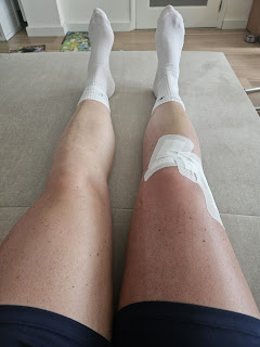 De ochtend na de operatie heb ik zelf het drukverband verwijderd en zag ik voor het eerst de wonden. Die zijn super netjes gehecht door Dr. Bogie. Zie je straks niks (lees: weinig) meer van. Met name (de snede aan) de buitenzijde, waar de Lemaire is uitgevoerd, was (en is) behoorlijk gevoelig. Na het verwijderen van het drukverband heb ik de Tubigrip aangetrokken. Dit geeft wel een prettige druk en het voelt toch als een soort van bescherming. Ik probeerde de oefeningen die ik vanuit het ziekenhuis mee had gekregen te doen. Het waren er drie: ankle pumps, heel slides en het aanspannen van mijn quadriceps. Meerdere malen per dag. Gedisciplineerd. Iets wat ik ook structureel doe is koelen. Koelen, koelen, koelen. De hele dag door. Dat laat de pijn tijdelijk vervagen.