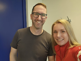 Nog enkele vragen passeerden de revue, alvorens ik mijn laatste brandende vraag op tafel wilde gooien. Een beetje spannend vond ik die vraag wel. Zoals velen van jullie weten had ik jaren geleden een blog over mijn kaakosteotomietraject. Ik heb er zelf heel veel aan gehad en ik heb er zóveel mensen mee op weg kunnen helpen. Redenen om ook dit kruisbandtraject weer te gaan delen. “Job, ik ga een blog bijhouden over al mijn ervaringen van dit traject, zo open en transparant mogelijk, met als doel andere patiënten op weg te helpen. Mag ik met je op de foto voor mijn blog van vandaag?” – het liefst was ik met Rob én Job op de foto gegaan, maar ik kreeg niet genoeg moed bij elkaar verzameld om het aan beiden te vragen. Job reageerde positief: “Natuurlijk! En wat goed dat je dit doet. Kom maar, dan maken we een foto”. We maakten een selfie et voilá. Hieronder een foto met de goedlachse, vriendelijke en kundige Job. Een professional die kennis heeft van zaken én de kwaliteit heeft om zijn patiënten op hun gemak te laten voelen. Chapeau.
