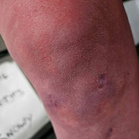 De dagen erna deed ik het rustig aan. De eerste twee dagen heb ik alleen iedere dag 10 minuten gefietst op de hometrainer. Rustig de trappers rond laten gaan. Meer niet. Op zondag zakten de zwelling en de kleur wat. Het voelde alleen nog steeds niet lekker. Op maandag ben ik een stuk gaan wandelen; ik was de straat nog niet uit of mijn knie begon te protesteren.
