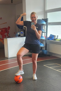 Trainen. Voor ieders beeldvorming: bij de juiste focus en met gecontroleerde, kleine bewegingen kan ik mijn oefeningen goed uitvoeren. Zolang ik recht vooruit beweeg, zonder rotaties, en wegblijf uit extensie en diepe flexie, gaat het prima. Dat is ook terug te zien in bovenstaande trainingsvideo. Laat me squatten in die kleine beweging en het gaat best goed. Split squats in dezelfde beperktere ROM? Check. Hamstring curls in die kleine beweging? Prima. Zodra er correctie of behoorlijke impact bij komt kijken, wordt het lastig. Iets te ver richting extensie bewegen? Sucks big time. Het hoort niet zo te zijn, maar op dit moment moet ik zorgen dat ik daar wegblijf, anders doet het echt pijn en kom ik moeilijk terug richting flexie, al helemaal als er druk op mijn been staat. Met of zonder pijnlijke knoep. En ja, afsluitend een open deur: geef me een bal en ik voel me gelukkig. Aan dat geluksgevoel wordt óók aandacht besteed. Heel belangrijk voor mij. In onderstaande video zie je dat ik eerst een pijnscheut met een knoep moet doorstaan en mijn houding moet corrigeren voordat ik de oefening kan uitvoeren. Goed staan is voor mij de eerste en belangrijkste stap van iedere oefening. Als ik eenmaal in de juiste positie sta, gaat het goed.