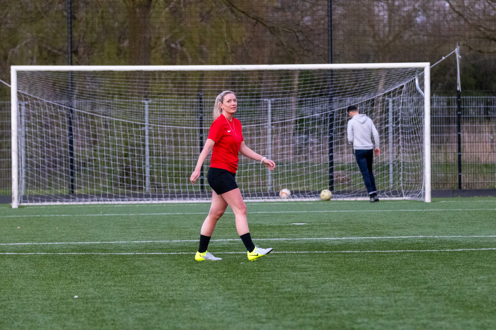 Ik voelde het gras onder mijn voeten en de bal aan mijn voet. Dat eerste contact voelde meteen goed en vertrouwd. Het is niet dat het al heel veel voorstelde, maar alleen al het feit dat ik weer op het veld stond, deed veel met me. Bijna een uur lang deden we een aantal loop-, dribbel- en passvormen. Als afsluiter mocht ik vanaf de 16 een aantal ballen op doel schieten. Conditioneel heb ik nog veel stappen te zetten, maar het balgevoel is er nog. De lach verdween niet meer van mijn gezicht. Tijdens het trainen drong het meerdere keren tot me door hoe lang ik hier naartoe heb gewerkt. Het maakte me enorm blij en trots.